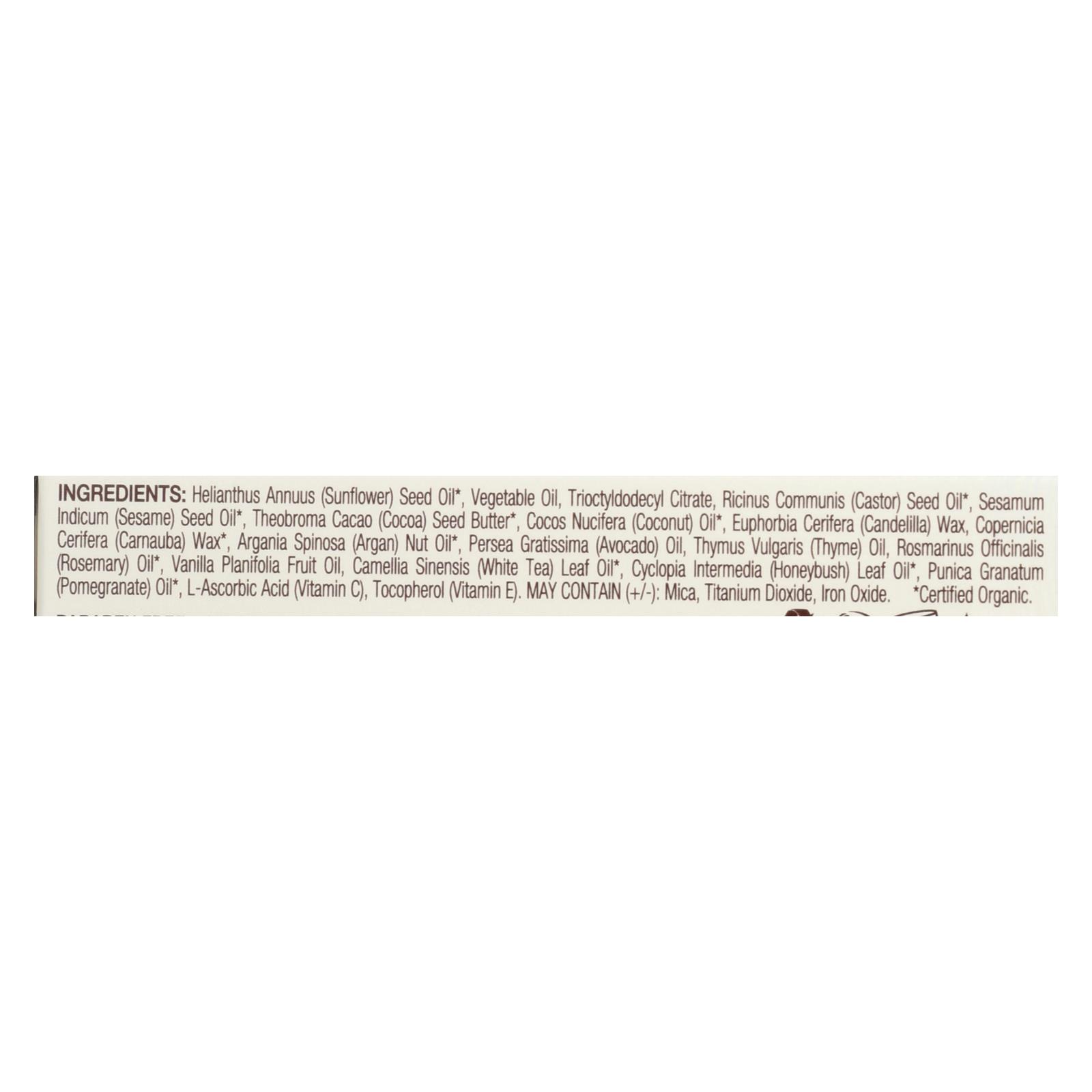 ingredients : helianthus annuus;sunflower;seed oil;vegetable oil;trioctyldodecyl citrate;ricinus communis;castor;sesamum indicum;sesame;theobroma cacao;cocoa;seed butter;cocos nucifera;coconut;oil;euphorbia cerifera;candelilla;wax;copernicia cerifera;carnauba;argania spinosa;argan;nut oil;persea gratissima;avocado;thymus vulgaris;thyme;rosmarinus officinalis;rosemary;vanilla planifolia fruit oil;camellia sinensis;white tea;leaf oil;cyclopia intermedia;honeybush;punica granatum;pomegranate;l-ascorbic acid;vita