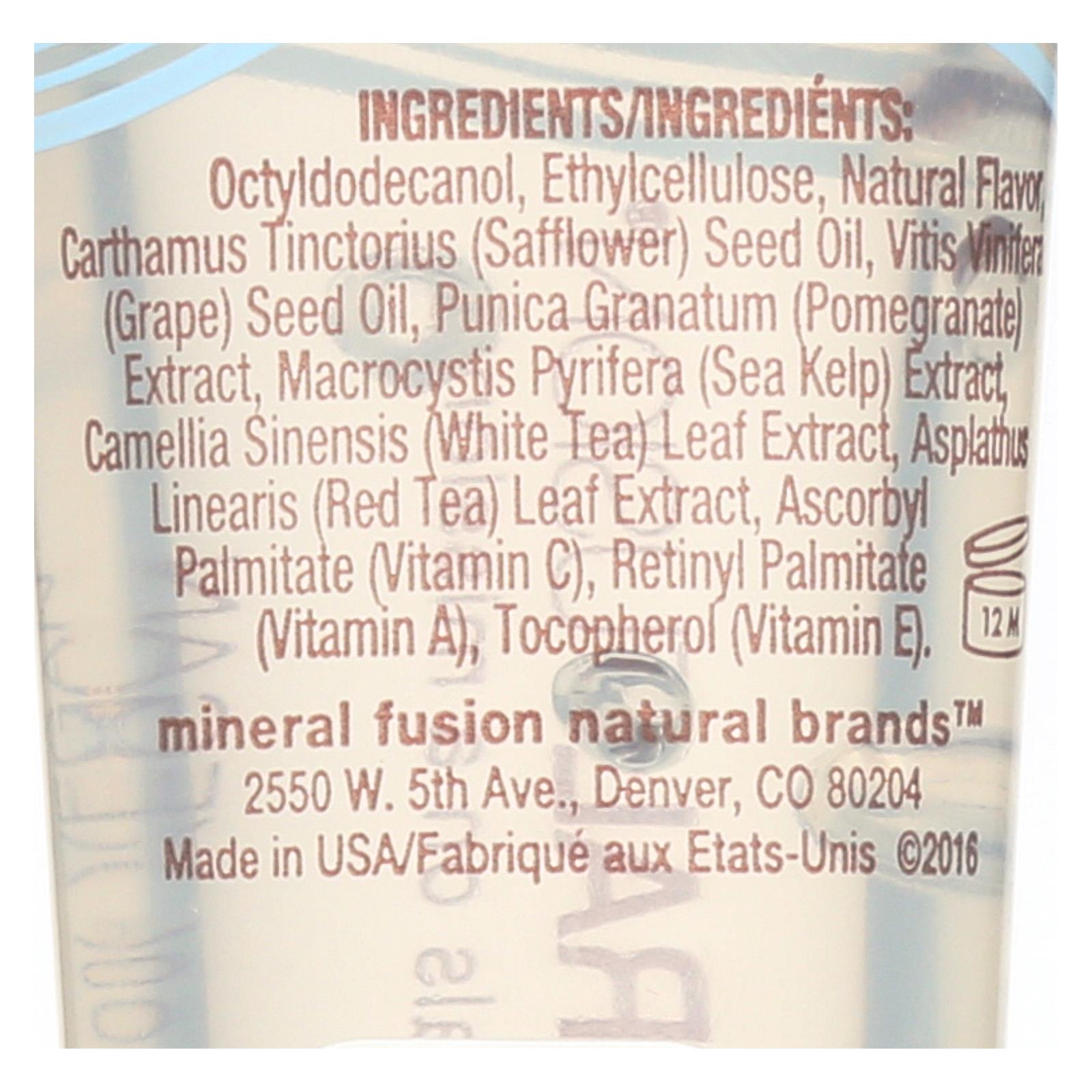 ingredients : octyldodecanol;ethylcellulose;natural flavor;carthamus tinctorius;safflower;seed oil;vitis vinifera;grape;punica granatum;pomegranate;extract;macrocystis pyrifera;sea kelp;camellia sinensis;white tea;leaf extract;asplathus linearis;red tea;ascorbyl palmitate;vitamin c;retinyl palmitate;vitamin a;tocopherol;vitamin e